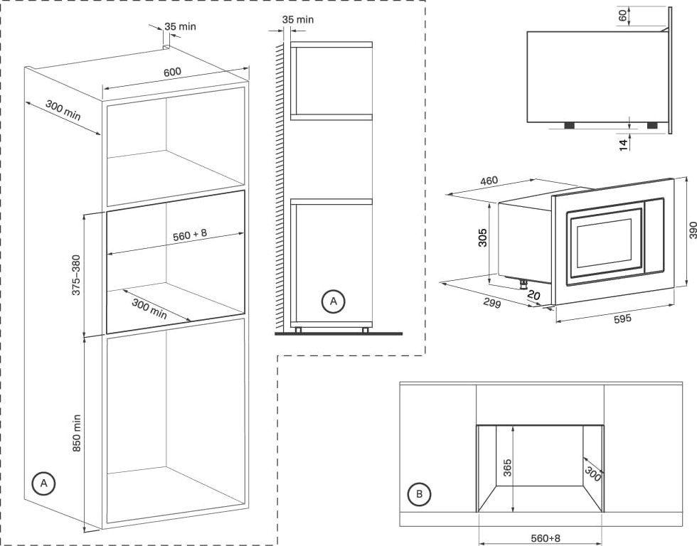 - Размеры ниши для встраивания (ВxШxГ): 36.5x56.8x30 cм