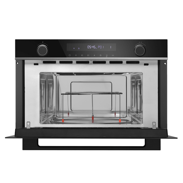 Глубина микроволновой печи —параметр, наиболее сильно влияющий на объем камеры и на диаметр вращающегося стеклянного блюда. Отдельно стоящие микроволновки соло, а также приборы, оснащенные грилем, имеют глубину от 35 до 45 см. При их установке на столешнице следует учитывать, в какую сторону и насколько широко будет открываться дверца. Глубина микроволновки, которая встраивается в кухонную мебель, также варьируется в широком диапазоне. Для полноразмерных моделей с откидной или навесной дверцей она может составить около 52-55 см, а для менее вместительных приборов — порядка 32-35 см.