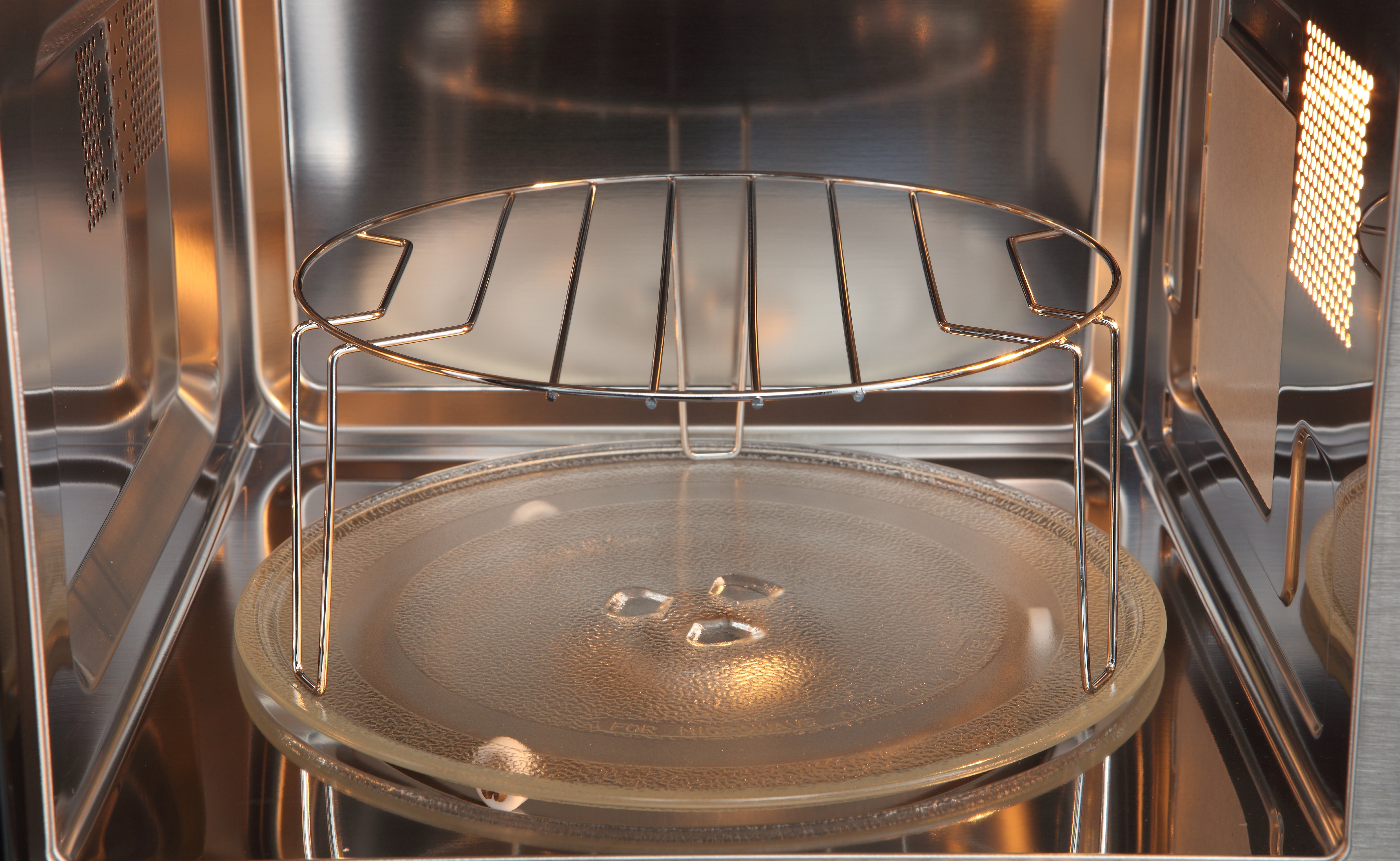 Нержавеющая сталь — быстро нагревается и хорошо переносит высокие температуры, поэтому ее используют в микроволновках с конвекцией.
