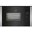 Neff HLAWD53N0 — встраиваемая микроволновая печь с рабочей камерой из нержавеющей стали. Камера вместимостью 25 литров и вращающаяся стеклянная тарелка диаметром 31,5 см позволяют готовить достаточно объемные блюда. Стандартная ширина 60 см, светодиодное освещение камеры и продуманная система тангенциального охлаждения позволяют располагать устройство на комфортной высоте в колонну с другими встроенными приборами. Фасад и фурнитура выполнены в классических оттенках — черном и стальном.