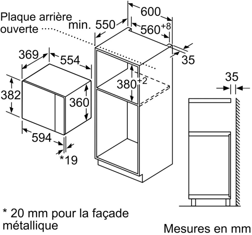 - Размеры ниши для встраивания (ВxШxГ): 36.2-36.5х56-56.8х32 cм