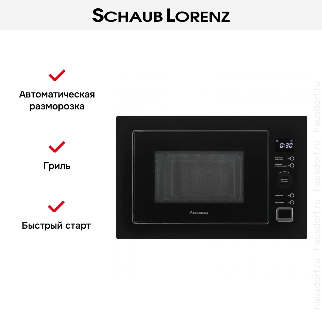 Количество режимов в данной модели Шауб Лоренц: 5 шт. Для обработки продуктов и готовых блюд используются следующие виды нагрева: Микроволны, Гриль, Автоматический режим разморозки, Автоматический режим приготовления. Выберите гриль, чтобы получить поджаристую корочку на мясе или рыбе. Тип гриля в этой микроволновке кварцевый. Если вы спешите, а еду нужно разогреть, используйте быстрый старт — благодаря ему 30 секунд прибор работает на полной мощности. Отдельная опция для размораживания продуктов и полуфабрикатов облегчает жизнь — не нужно самостоятельно настраивать параметры. Автоматические программы для приготовления добавлены производителем также для упрощения работы.