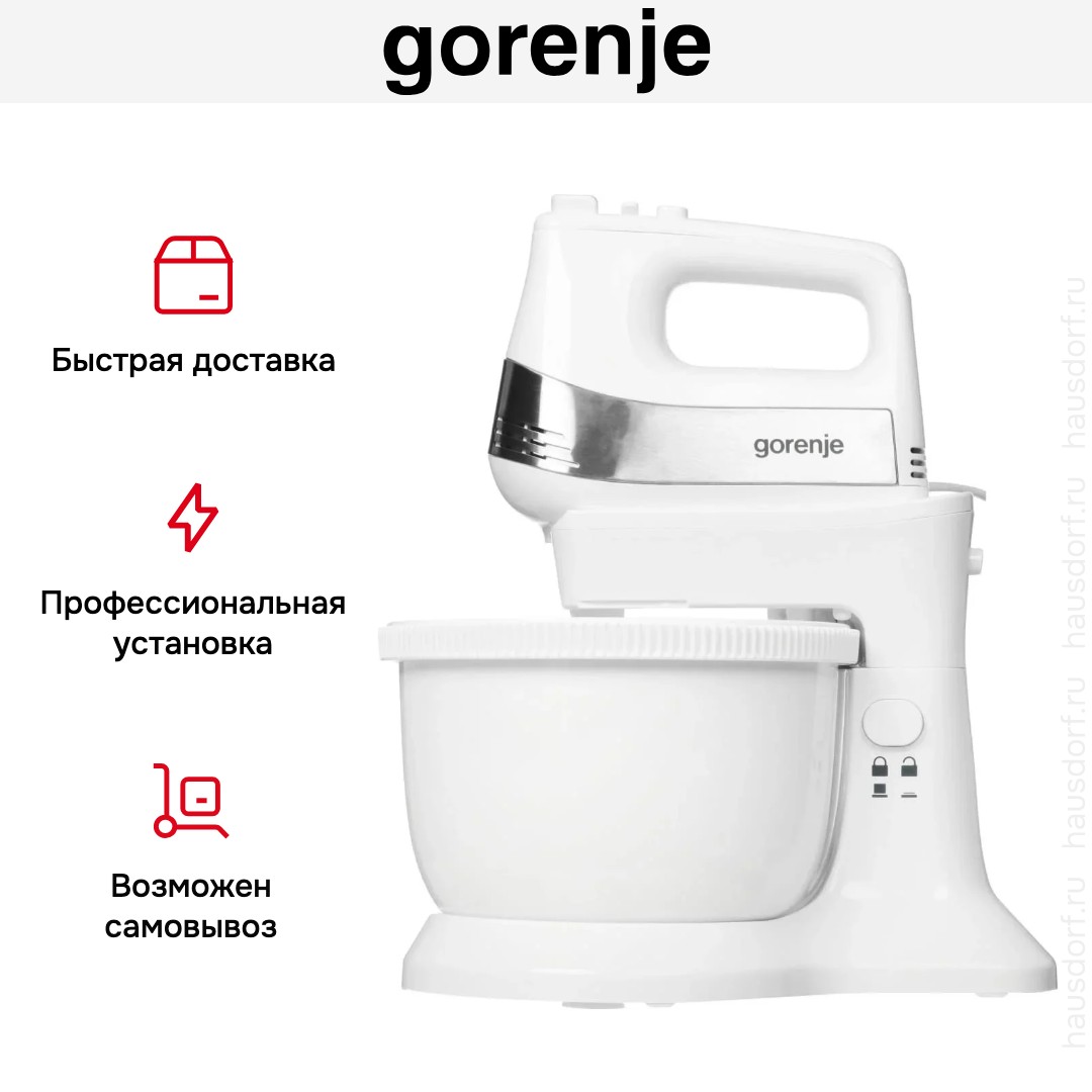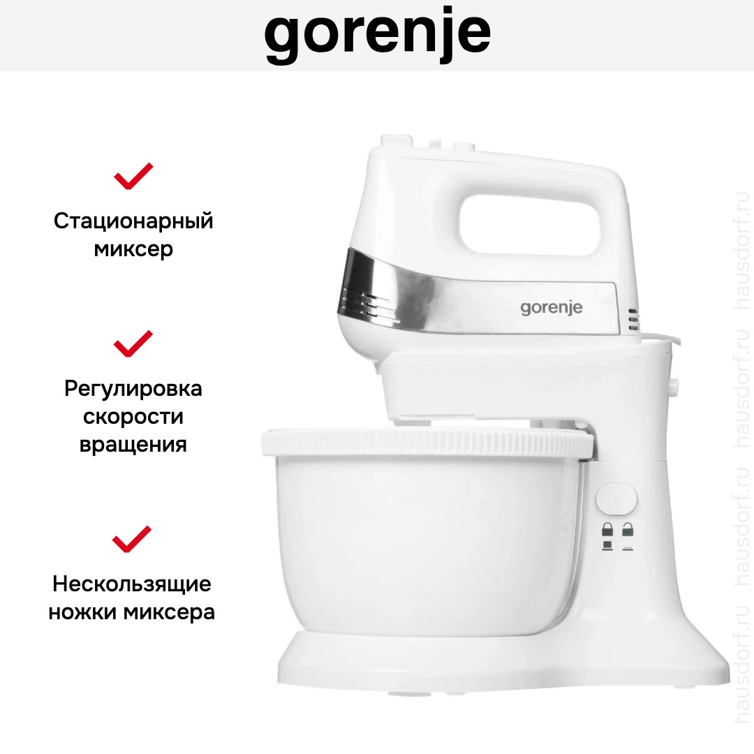 Миксер Gorenje M500DCS — это надёжный стационарный помощник на кухне, созданный для тех, кто ценит удобство, функциональность и эстетику в приготовлении блюд. Белоснежный корпус из прочного пластика придаёт устройству лёгкость и современный вид, гармонично вписываясь в интерьер любой кухни — от классической до минималистичной. Компактные габариты (35,5×30,5×21,5 см) позволяют разместить прибор даже на ограниченной рабочей поверхности, не загромождая пространство.