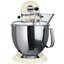Обратите внимание на цвет миксера Китчен Эйд — кремовый — он может стать как гармоничным дополнением кухонной обстановки, так и ярким акцентом. В комплекте с самим прибором идут дополнительные элементы: венчик для взбивания, защитная крышка на чашу, защитный обод с воронкой для засыпания продуктов, крюки для теста, насадка-лопатка для перемешивания. Вы можете приобрести и установить другие насадки, для них создано специальное гнездо. Также производитель предусмотрел вариант расширения функционала до кухонного комбайна.