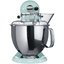 Обратите внимание на цвет миксера Китчен Эйд — голубой — он может стать как гармоничным дополнением кухонной обстановки, так и ярким акцентом. В комплекте с самим прибором идут дополнительные элементы: венчик для взбивания, защитная крышка на чашу, защитный обод с воронкой для засыпания продуктов, крюки для теста, насадка-лопатка для перемешивания. Вы можете приобрести и установить другие насадки, для них создано специальное гнездо. Также производитель предусмотрел вариант расширения функционала до кухонного комбайна.