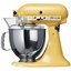 Обратите внимание на цвет миксера Китчен Эйд — желтый — он может стать как гармоничным дополнением кухонной обстановки, так и ярким акцентом. В комплекте с самим прибором идут дополнительные элементы: венчик для взбивания, защитная крышка на чашу, защитный обод с воронкой для засыпания продуктов, крюки для теста, насадка-лопатка для перемешивания. Вы можете приобрести и установить другие насадки, для них создано специальное гнездо. Также производитель предусмотрел вариант расширения функционала до кухонного комбайна.