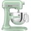 Обратите внимание на цвет миксера Китчен Эйд — фисташковый — он может стать как гармоничным дополнением кухонной обстановки, так и ярким акцентом. В комплекте с самим прибором идут дополнительные элементы: венчик для взбивания, крюки для теста, насадка-лопатка для перемешивания, защитный обод. Также производитель предусмотрел вариант расширения функционала до кухонного комбайна.