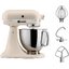 Планетарный миксер KitchenAid Artisan 5KSM125EMH — элегантный и мощный помощник на кухне, сочетающий в себе классический дизайн, надёжную конструкцию и высокую функциональность. Эта стационарная модель выполнена в нежном кремовом оттенке, который придаёт устройству утончённый винтажный шарм и легко вписывается в интерьеры любого стиля — от прованса до современного минимализма. Корпус изготовлен из прочного металла, что обеспечивает устойчивость при работе и долговечность даже при интенсивном использовании. В комплект входит чаша объёмом 4,8 литра из нержавеющей стали — достаточно вместительная для приготовления теста, кремов, соусов или взбивания больших порций ингредиентов за один подход. Благодаря планетарному принципу действия насадки вращаются не только вокруг своей оси, но и по всей поверхности чаши, обеспечивая тщательное и равномерное перемешивание без необходимости вручную доскребать края. Управление осуществляется механическим способом с помощью удобного переключателя, предлагающего несколько скоростей для выполнения различных задач — от деликатного замеса до интенсивного взбивания. Габариты прибора составляют 36 см в высоту, 20 см в ширину и 33 см в глубину, что делает его компактным для своей мощности и вместимости. Несмотря на вес в 11,3 кг, миксер устойчив на поверхности и не «путешествует» по столу даже при работе с плотным тестом. В упаковке (42×28×42 см) устройство надёжно защищено, а общий вес брутто — 12,7 кг — подчёркивает солидность конструкции. Модель идеально подойдёт как для домашних пекарей, так и для тех, кто регулярно готовит для семьи или гостей. Прочная сборка, продуманная эргономика и безупречное качество исполнения делают этот миксер не просто кухонным прибором, а настоящим украшением рабочей зоны. Он легко справляется с дрожжевым, песочным или бисквитным тестом, взбивает сливки до устойчивых пиков и готовит однородные начинки без комков. Надёжность, проверенная временем, и эстетика, вдохновляющая на кулинарные подвиги, — всё это делает данную модель разумным вложением в комфорт и удовольствие от готовки.