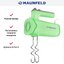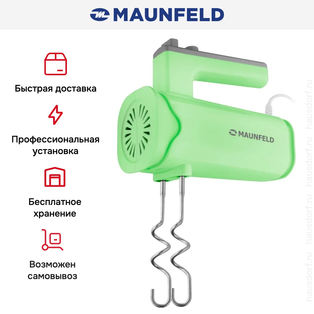 По функционалу это ручной миксер с механическим управлением, рассчитанный на бытовое использование: мощность 300 Вт обеспечивает стабильную работу при стандартных кухонных задачах, а набор из восьми скоростей и регулировка скорости помогают точно подстроиться под разные рецепты. Максимальная скорость вращения достигает 1300 об/мин, есть кнопка для быстрой отсоединения насадок. В комплекте поставляются четыре насадки, включая венчик для взбивания и крюки для теста — базовый набор для смешивания, взбивания и замеса.