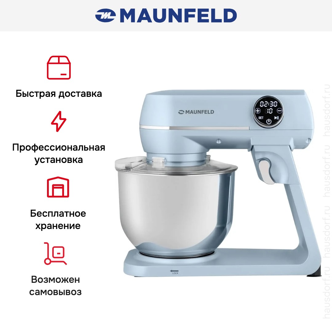 Стационарный миксер Maunfeld MF-423BL имеет аккуратный корпус красивого нежно-голубого цвета и сразу привлекает внимание своей эстетикой. Компактные габариты 35.723.839.9 см делают прибор удобным для размещения на кухонной столешнице. Металлический корпус добавляет солидности и устойчивости, поэтому аппарат не будет шататься при интенсивной работе. Упаковочные размеры 453243 см и небольшой вес в 9.2 кг облегчают доставку и хранение.