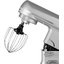 В комплект входят три насадки — венчик, крюки для теста и лопатка для перемешивания, а также защитный обод с воронкой для удобной дозагрузки продуктов во время работы. Чаша объёмом 5 литров изготовлена из нержавеющей стали, она прочна и устойчива к коррозии, не впитывает запахи и легко моется. Воронка облегчает добавление муки, масла или жидкостей без остановки процесса.