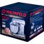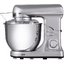 Производительность обеспечивается мотором мощностью 1 кВт — запас тяги заметен при работе с плотными смесями. Вместительная чаша на 5 литров подходит для порций на семью или для заготовок, а сталь устойчива к царапинам и легко очищается. В комплект входят четыре насадки: венчик для воздушных смесей, крюки для теста, насадка-лопатка для перемешивания и защитный обод с воронкой — удобно подсыпать продукты прямо в процессе, не загрязняя окружающие поверхности.