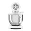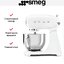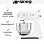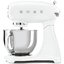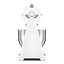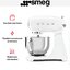 Миксер Smeg SMF03WHEU — стационарная модель с планетарным вращением в корпусе белого цвета. При запуске вращается не только насадка, но и головка, в которой она крепится. Такое вращение позволяет захватывать весь объем чаши. Прибор мощностью 800 Вт с 4 насадками и чашей объемом 4,8 литра из нержавеющей стали позволяет готовить тесто любой плотности, смешивать и взбивать. Имеется гнездо для установки дополнительных насадок. При поднятой головке работа миксера Смег SMF03WHEU автоматически прекращается.