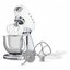 Обратите внимание на цвет миксера Смег — белый — он может стать как гармоничным дополнением кухонной обстановки, так и ярким акцентом. В комплекте с самим прибором идут дополнительные элементы: венчик для взбивания, защитная крышка на чашу, крюки для теста. Вы можете приобрести и установить другие насадки, для них создано специальное гнездо.