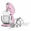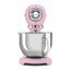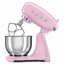 Обратите внимание на цвет миксера Смег — розовый — он может стать как гармоничным дополнением кухонной обстановки, так и ярким акцентом. В комплекте с самим прибором идут дополнительные элементы: венчик для взбивания, защитная крышка на чашу, крюки для теста, лопатка с гибким ребром. Вы можете приобрести и установить другие насадки, для них создано специальное гнездо.