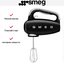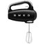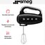 Ручной миксер Smeg HMF01BLEU из коллекции в стиле 50-х годов — компактный прибор весом 1,15 кг и мощностью 250 Вт. Корпус черного цвета изготовлен из безопасного пластика ABS, удобная ручка не выскальзывает даже из влажных рук благодаря прорезиненной вставке. 6 насадок, в том числе венчик для взбивания и крюки для теста, изготовлены из нержавеющей стали, к ним прилагается тканевый чехол. Миксер Смег HMF01BLEU имеет электромеханическую систему управления: скорости можно переключать одной рукой при помощи кнопок «+» и «-».