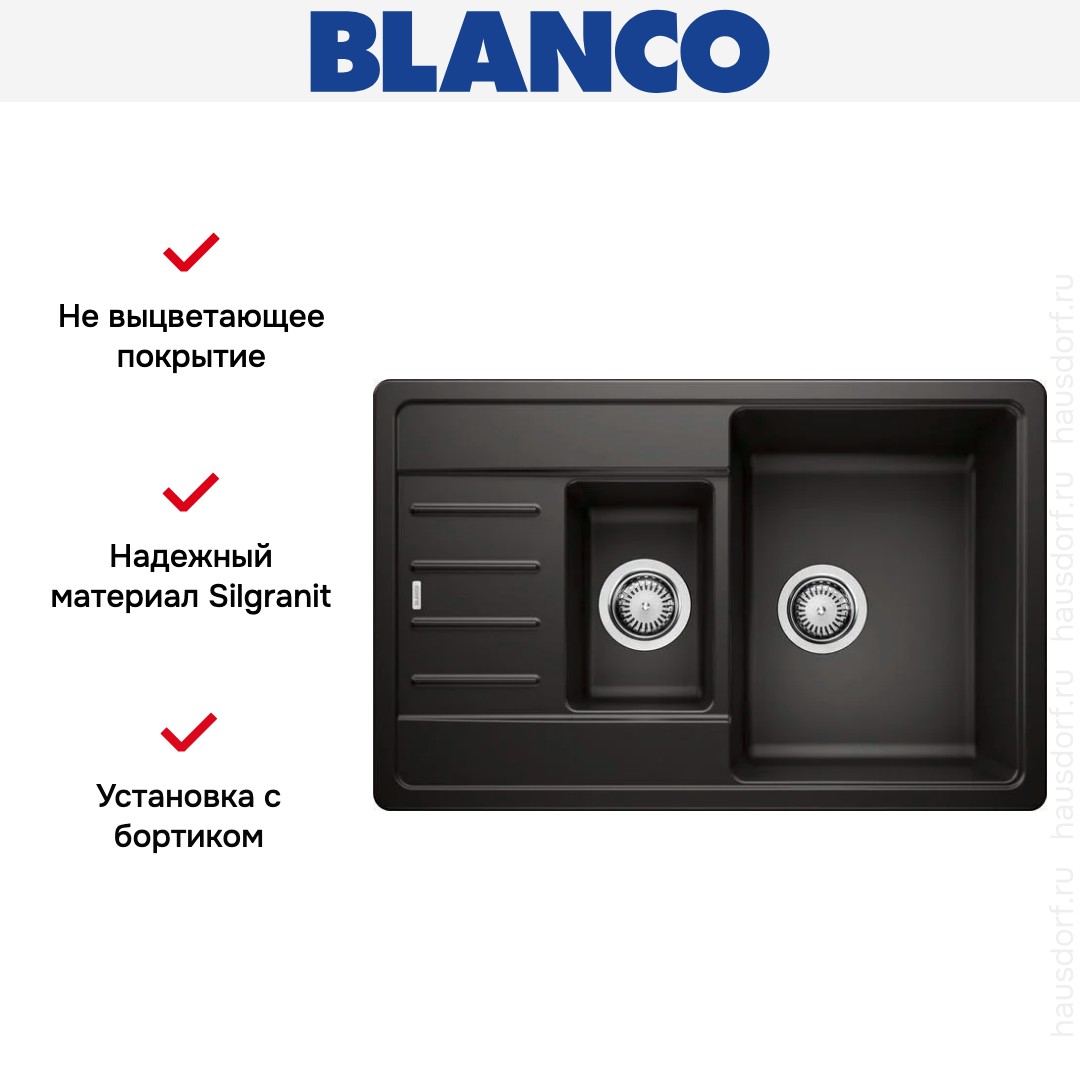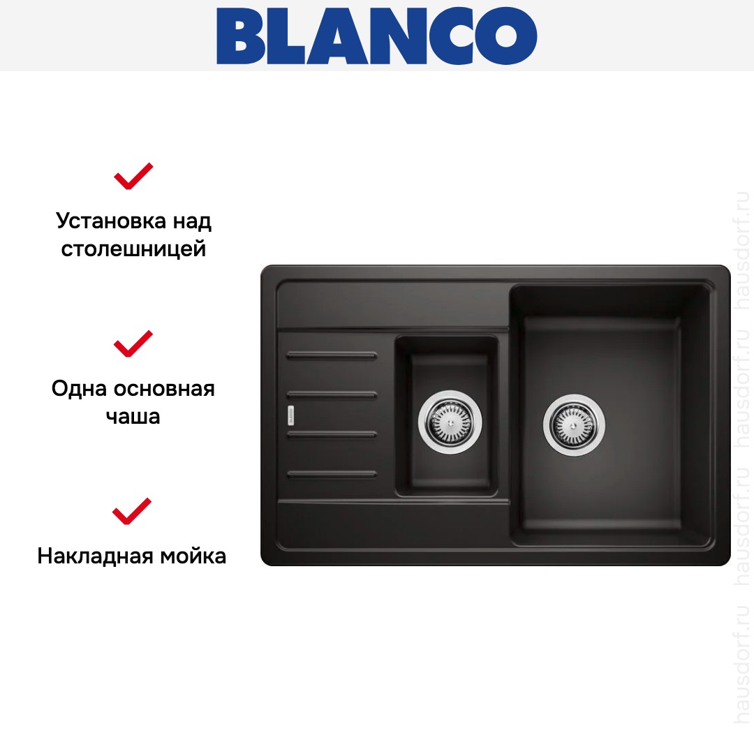 Накладная мойка Blanco — отличный выбор для тех, кто хочет создать гармоничное пространство с удобной сантехникой. простой в установке. Преимущество такой конструкции: легко подобрать практически к любой кухне и не придется демонтировать вместе с тумбой при ремонте или перестановке остальной мебели. Данная модель имеет стандартную форму, поэтому подходит большинству пользователей. Устанавливается над столешницей: это самый простой способ монтажа, зачастую с ним можно справиться даже без специалистов, главное — правильно рассчитать размеры ниши.