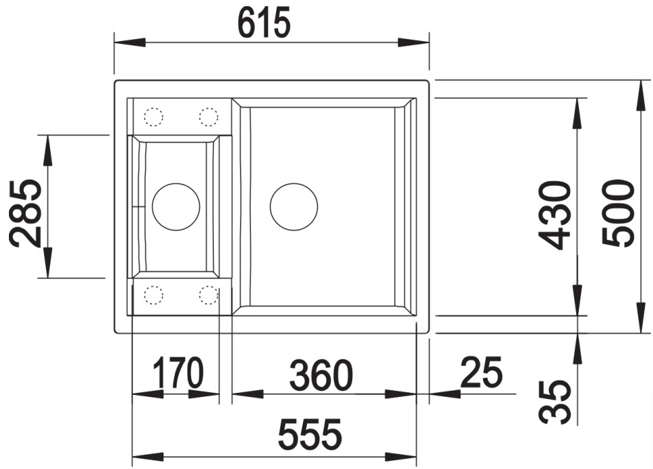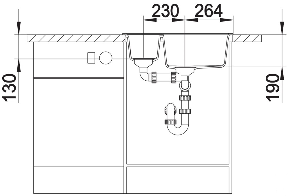База — это шкаф, в который вы планируете устанавливать мойку. Данный параметр обозначает минимальную ширину между боковые стенками. Именно столько нужно, чтобы правильно разместить всю сантехнику.