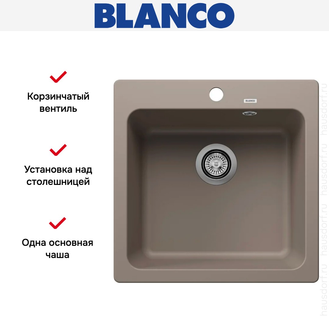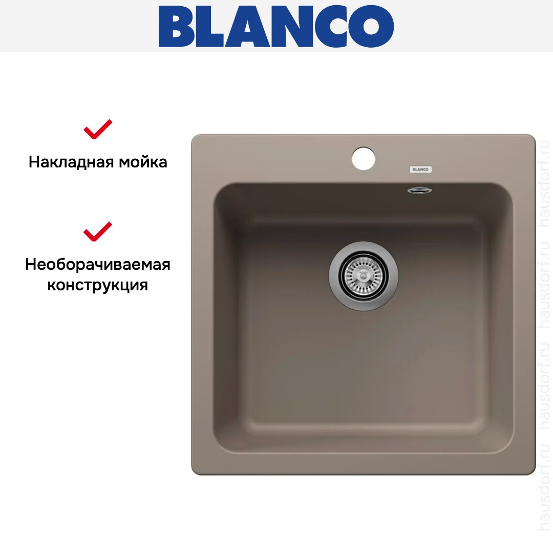 Мойка Blanco Naya 5 Silgranit серый беж — компактная накладная модель для практичных кухонь. Она сочетает современный квадратный силуэт и мягкую цветовую гамму, что делает интерьер аккуратным и спокойным.