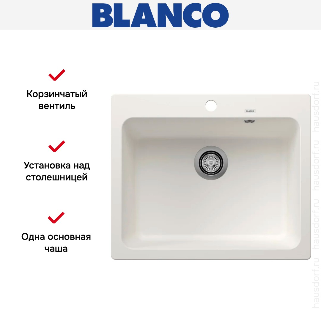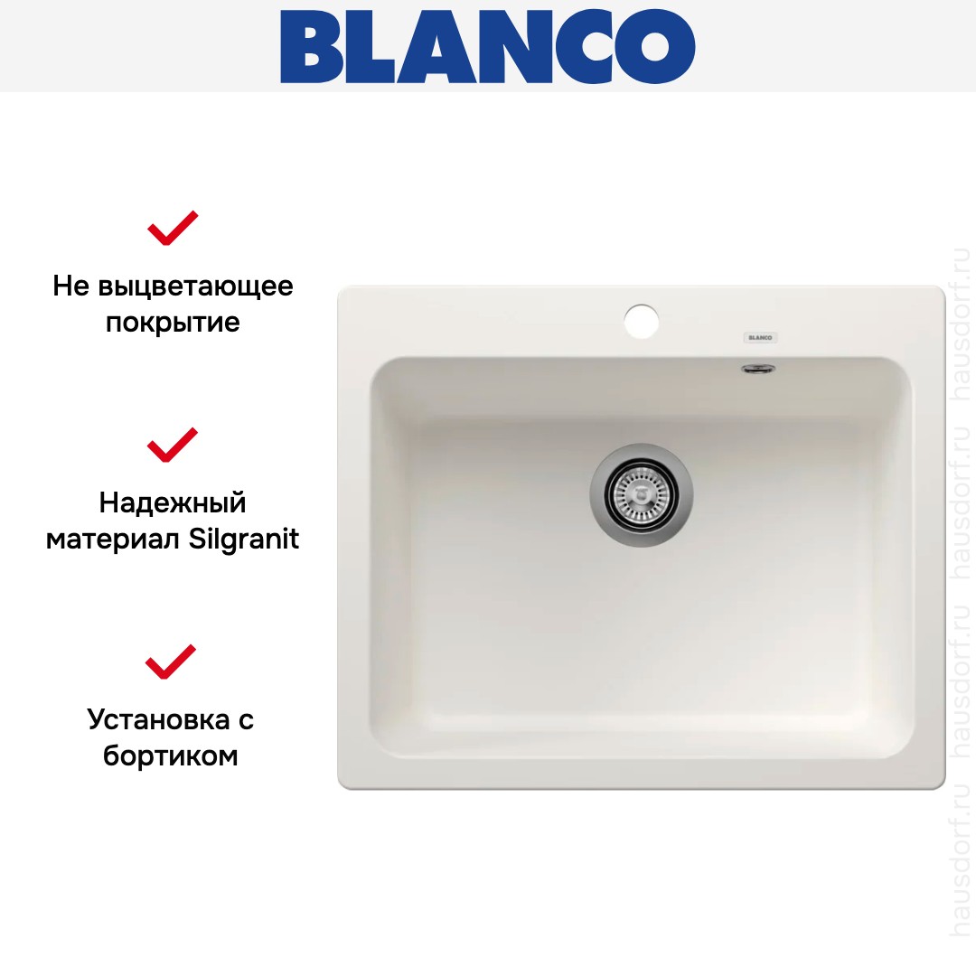 Обратите внимание на дизайнерские отличия мойки Бланко, которые помогут в создании идеальной кухни в вашем доме. Она выполнена в цвете белый. Основной материал — Silgranit, он гарантирует надежность и долгие годы службы без повреждений.