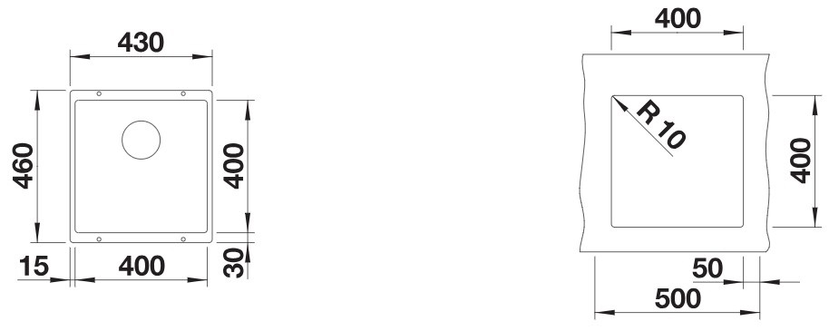 За счет врезного подстольного монтажа поверхность столешницы остается гладкой и бесшовной, что упрощает уборку. Встраивание под столешницу делает рабочую зону визуально просторнее и позволяет смахивать крошки прямо в чашу. Ширина мойки 43 см и глубина 46 см делают ее удобной для установки в базу от 50 см, при этом требуемое монтажное отверстие составляет 40×40 см. Радиус скругления шаблона 1 см упрощает подготовку выреза и обеспечивает плотное прилегание кромки.