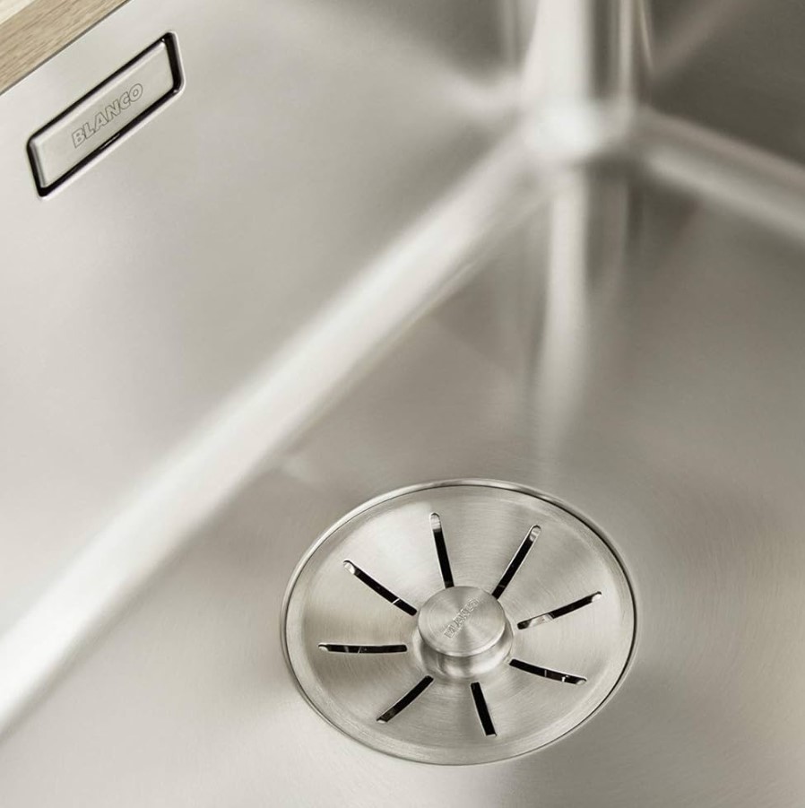 Заглушка для сливного отверстия с множеством отверстий для фильтрации. Благодаря ему вода уходит в канализацию, а крупные частицы пищи остаются в раковине. Это помогает избежать засора.