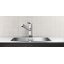 Одна основная чаша размером 70×40 см и глубиной 18,5 см дает простор для кастрюль и сковород. Наличие скрытого перелива C-overflow предотвращает переизбыток воды и сохраняет аккуратный внешний вид. В комплекте предусмотрена система слива InFino и корзинчатый вентиль, которые упрощают отвод воды и уборку твердых остатков. Диаметр сливного отверстия 3,5 дюйма совместим с большинством стандартных сифонов и аксессуаров.