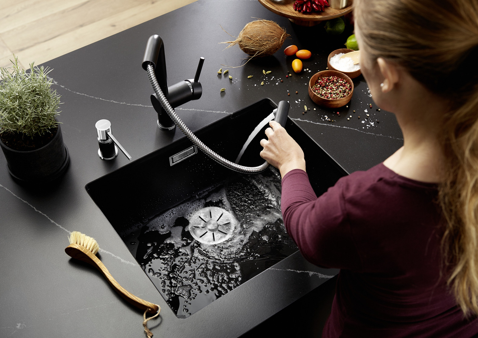Глубина чаши — очень важная характеристика, на которую необходимо обратить внимание, подбирая вариант для вашей кухни. Выбирать следует одновременно мойку по глубине и смеситель по высоте излива: если не согласовать эти два размера, мыть посуду или подготавливать продукты перед готовкой будет неудобно из-за брызг. Глубина зависит от многих параметров: количества чаш, типа чаши — основной или дополнительной, даже материала изготовления, а также габаритов самой мойки. Кроме того, рекомендуется ориентироваться на пищевые привычки семьи — какие продукты и какая посуда используется чаще всего и поместится ли она в раковину.