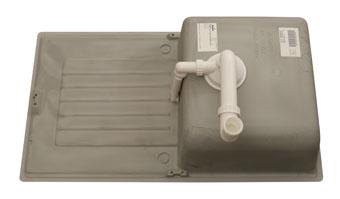 Крыло является удобным дополнением конструкции и служит полноценной площадкой для сушки посуды и подготовки продуктов. На поверхности темного цвета меньше заметны по сравнению с нержавеющей сталью, а рельеф гранитной поверхности скрывает мелкие царапины. Материал устойчив к термическим нагрузкам и ударам, он не боится соприкосновения с горячими предметами и механической нагрузки.