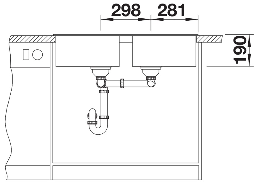 База — это шкаф, в который вы планируете устанавливать мойку. Данный параметр обозначает минимальную ширину между боковые стенками. Именно столько нужно, чтобы правильно разместить всю сантехнику.