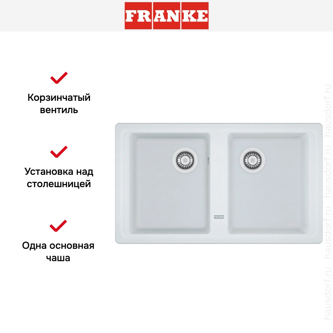 Мойка Franke BFG 620-86 белый — накладная прямоугольная модель размером 86×50 см в дизайне Basis. Её лаконичный белый цвет и строгие геометрические линии создают аккуратный современный образ. Матовая поверхность фрагранита выглядит естественно и добавляет кухне ощущение качества. Необорачиваемая конструкция сохраняет деликатную симметрию и подчеркивает минимализм.
