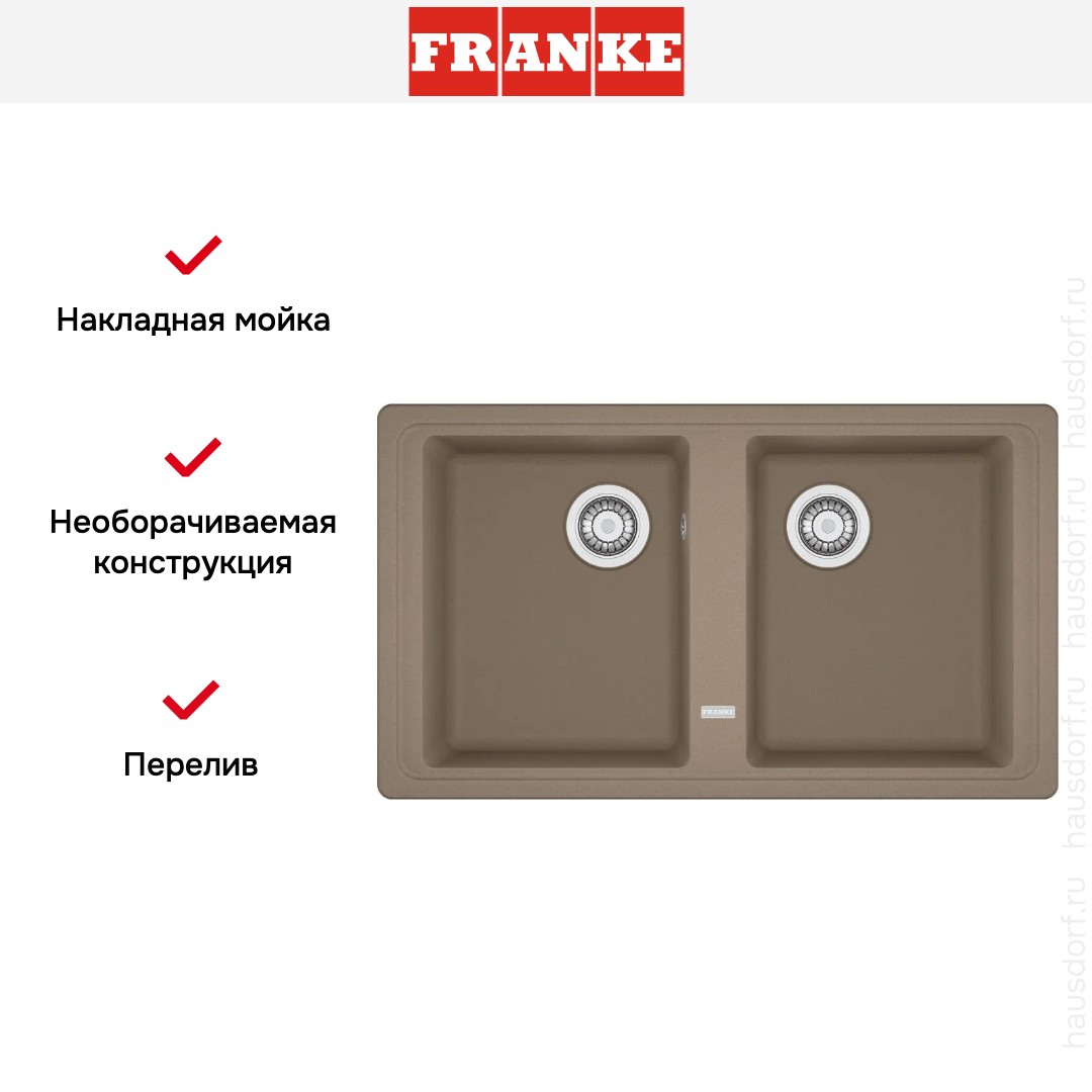Мойка Franke BFG 620 86 Миндаль — накладная прямоугольная модель из фрагранита с тёплым оттенком миндаля.
