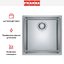 Особенностью конструкции являются минимальные радиусы скруглений: внутренняя чаша имеет закругление радиусом 1,6 см, а внешние кромки — 1 см. Такой подход придаёт изделию чёткие геометрические формы и лаконичный вид, подчёркивая современный характер дизайна, при этом сохраняя удобство очистки. Мойка изготовлена из высококачественной нержавеющей стали, устойчивой к коррозии, механическим повреждениям и перепадам температур. Матовая поверхность сохраняет презентабельный вид даже при регулярной эксплуатации, эффективно маскируя мелкие царапины и отпечатки.