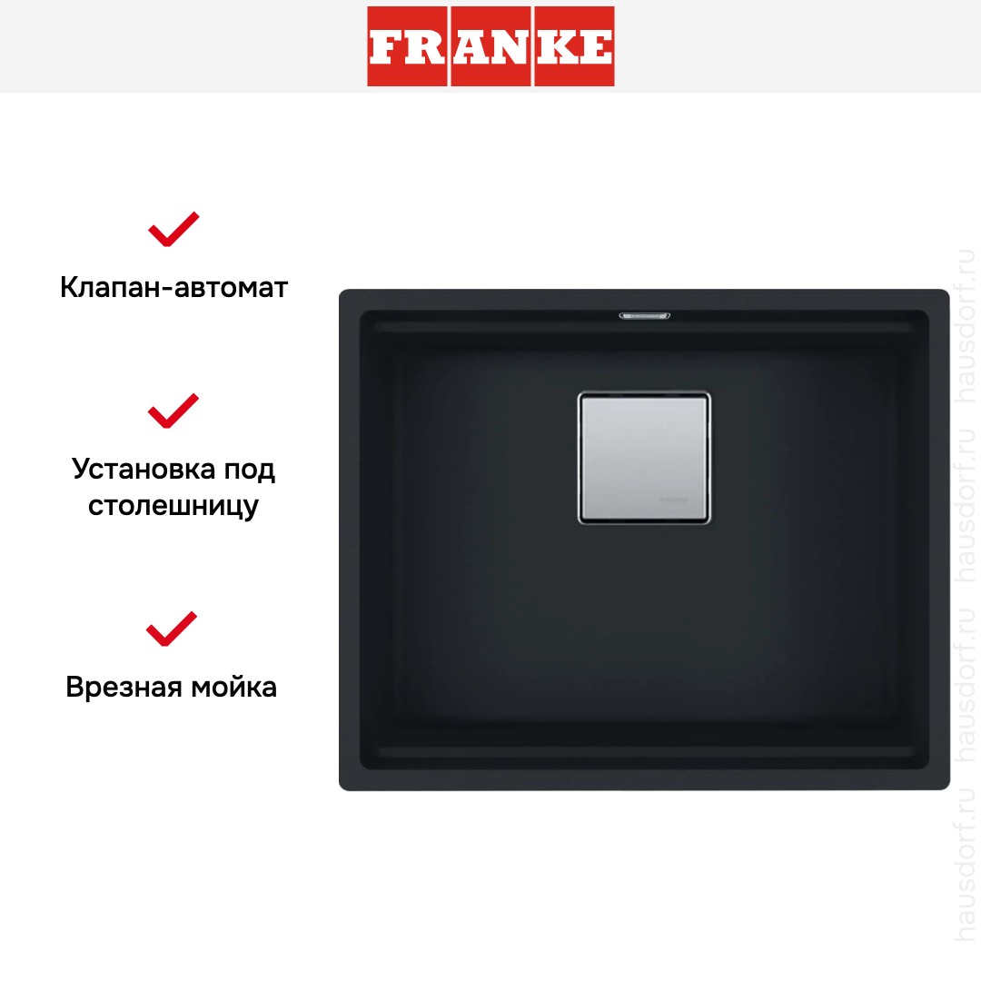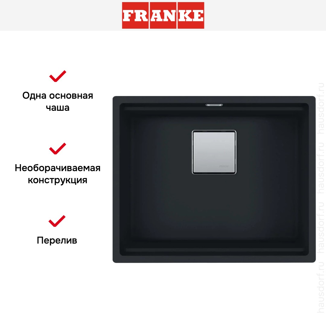 Мойка Franke KNG 110 52 черный — стильное встроенное решение для современной кухни в дизайне Kubus. Ее строгие геометрические линии и насыщенный темный цвет создают выразительный акцент в интерьере. Поверхность из гранита придает глубину оттенку и одновременно выглядит дорого и элегантно.