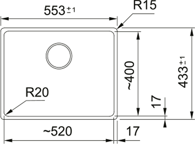 Глубина чаши 43,3 см обеспечивает комфорт при выполнении повседневных задач — от мытья посуды до подготовки продуктов — и эффективно снижает риск разбрызгивания воды. Внутренние углы закруглены радиусом 2 см, что придает форме мягкость и облегчает очистку, а внешний контур имеет более четкие, но все же сглаженные линии с радиусом 1,5 см, что подчеркивает современный характер дизайна.