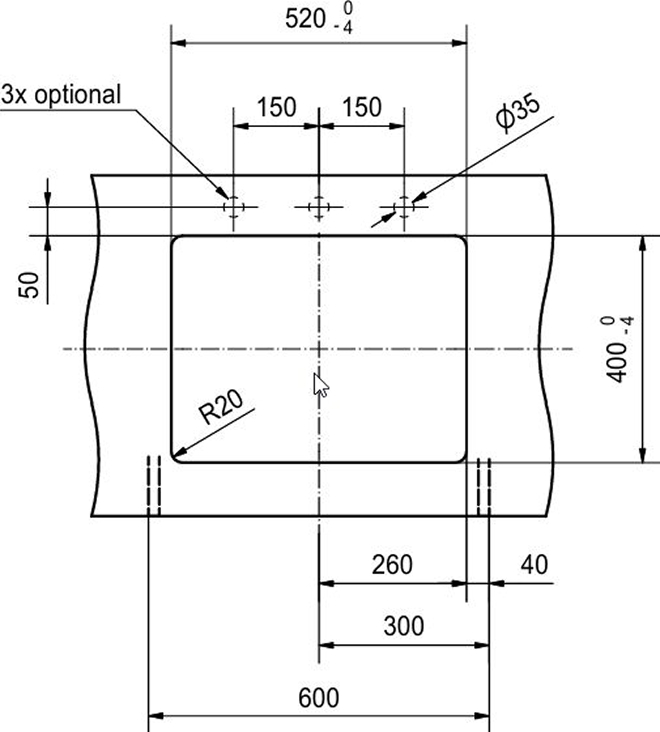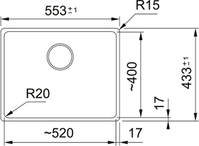 Глубина чаши 43,3 см обеспечивает удобство при выполнении различных задач — от мытья посуды до обработки продуктов — и эффективно предотвращает разбрызгивание жидкости. Внутренние углы закруглены радиусом 2 см, что придает чаше мягкость и облегчает очистку, а внешний контур имеет более четкие, но все же сглаженные линии с радиусом 1,5 см, что подчеркивает современный и аккуратный дизайн.