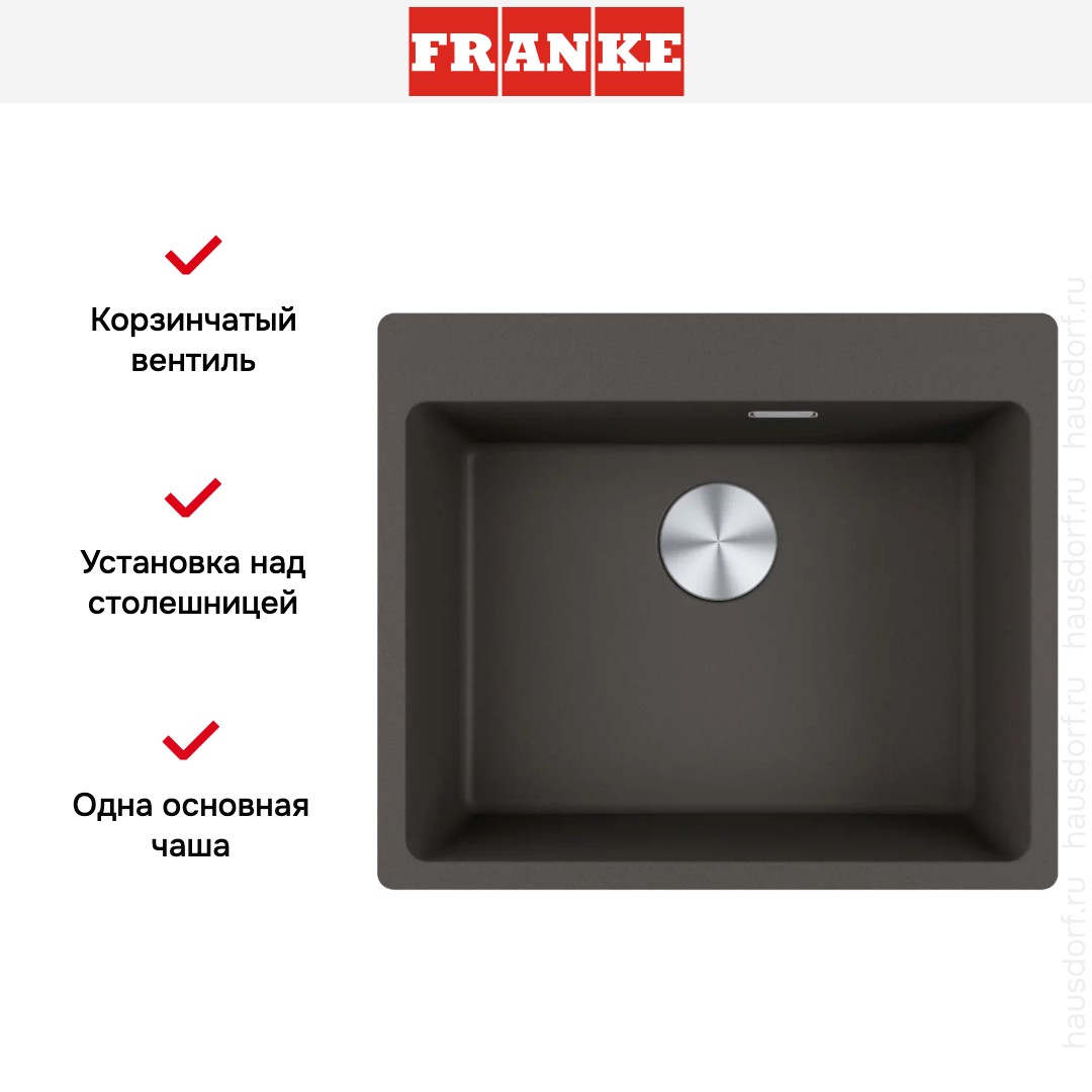 Мойка Franke MRG 610-54 FTL грифельно-серого цвета — стильное и практичное решение для современной кухни, сочетающее в себе лаконичный дизайн и высокую функциональность. Эта прямоугольная врезная модель устанавливается над столешницей, обеспечивая эстетичное визуальное завершение фасада и упрощая процесс монтажа. Её внешние габариты — 59×50 см — идеально соответствуют стандартному кухонному модулю шириной 60 см, а для правильной установки требуется подготовить проём размером 57×48 см.