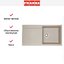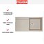 Внешний облик выполнен в стиле Maris: строгие геометрические линии сочетаются с мягким теплым тоном «сахара» и ванильным оттенком. Широкая рабочая зона и аккуратное крыло создают ощущение легкости и порядка. Поверхность из фрагранита выглядит натурально и солидно, она добавляет интерьеру теплоты и легко вписывается в разные отделки столешниц.