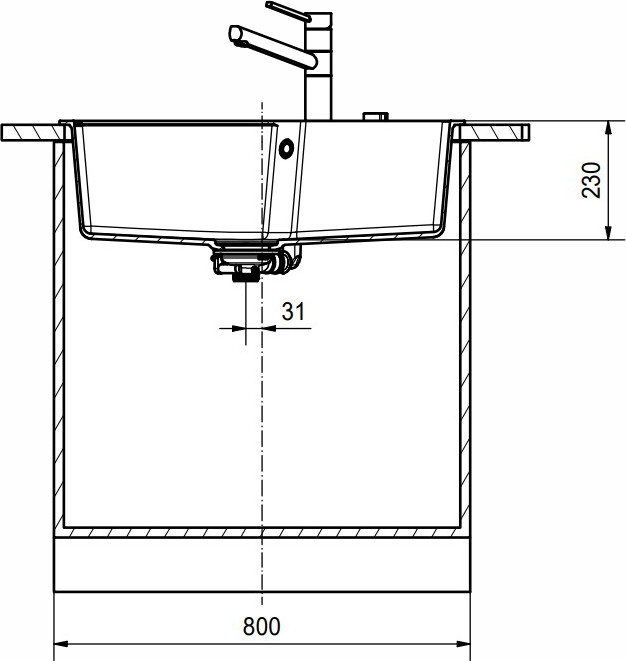 База — это шкаф, в который вы планируете устанавливать мойку. Данный параметр обозначает минимальную ширину между боковые стенками. Именно столько нужно, чтобы правильно разместить всю сантехнику.