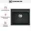 Материал: ArtGranit. Изделие изготовлено методом литья, что обеспечивает равномерность структуры и стабильность геометрии. Толщина стенки 10 мм сочетается с относительной лёгкостью изделия — вес 5,3 кг — и делает мойку удобной при транспортировке и монтаже. О составе материала на странице указано как ArtGranit; в описании отмечены свойства, которые проявляются в тактильном ощущении и общем поведении поверхности во время эксплуатации: приятная матовость, стойкость к внешним воздействиям и ровная окраска черного тона. Литая конструкция формирует цельную чашу без стыков, а поставляемые элементы отвода и крепления упрощают финальную сборку.