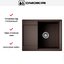 Конструкция рассчитана на установку над столешницей и подходит для базы шириной 50 см. Монтажное отверстие 63×49 см обеспечивает точную подгонку, а комплект фиксации ускоряет монтаж. Мойка оборачиваемая, поэтому крыло можно расположить слева или справа в зависимости от плана рабочей зоны. Метод литья гарантирует однородность структуры и отсутствие швов по всему изделию.
