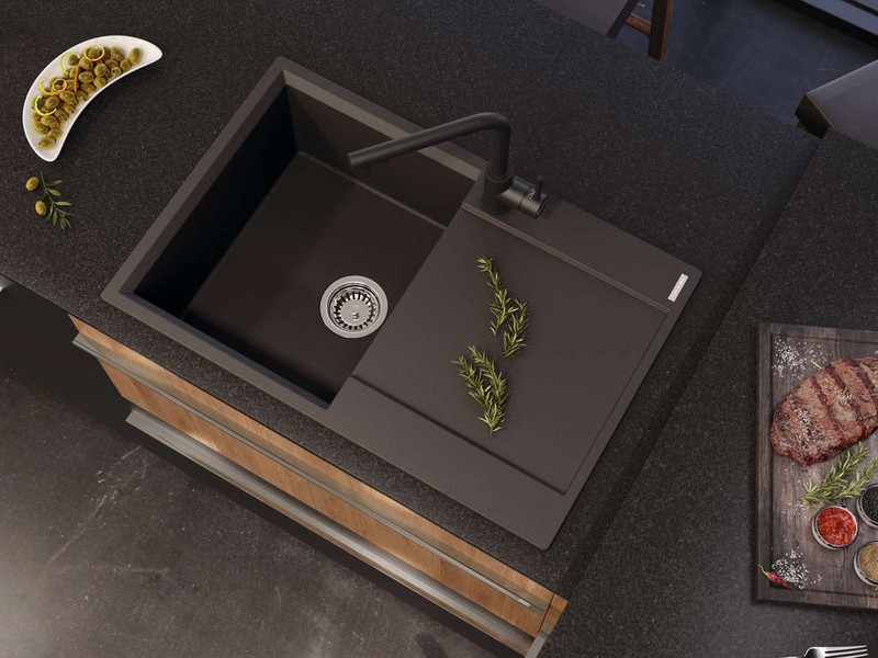 Эргономика и продуманность элементов делают этот вариант удобным как для семейной кухни, так и для компактных студий. Глубина чаши и встроенные элементы обеспечивают быстрый и аккуратный отвод воды, а сменное направление крыла дает свободу при размещении бытовой техники. В совокупности это решение сочетает прочность композитного гранита, практичность монтажа и современный внешний вид, подходящий для широкого круга интерьерных задач.