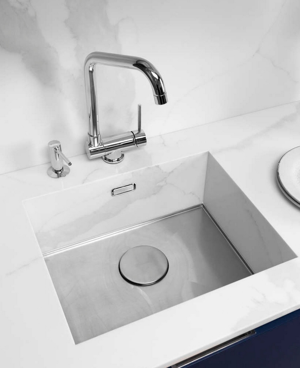 Стальной корпус с зеркальной отделкой придает рабочей зоне аккуратный и профессиональный вид. Габариты 53×45 см и ширина базы 60 см делают изделие идеальным для стандартных шкафов. Необорачиваемая конструкция задает фиксированную ориентацию, что упрощает проектирование столешницы и размещение смесителя. Ручное производство гарантирует аккуратные швы и внимание к деталям, а вес 4,7 кг подтверждает компактность и при этом прочность изделия.