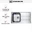Мойка выглядит лаконично и функционально: прямоугольный силуэт размером 86×50 см с мягко очерченными углами радиусом 10 см придаёт рабочей зоне аккуратный стальной акцент. Поверхность нержавеющей стали отдаёт нейтральным металлическим оттенком, а расположение крыла может быть адаптировано — слева или справа — в зависимости от планировки кухни. Конструкция оборачиваемая, что даёт свободу при выборе стороны размещения крыла.
