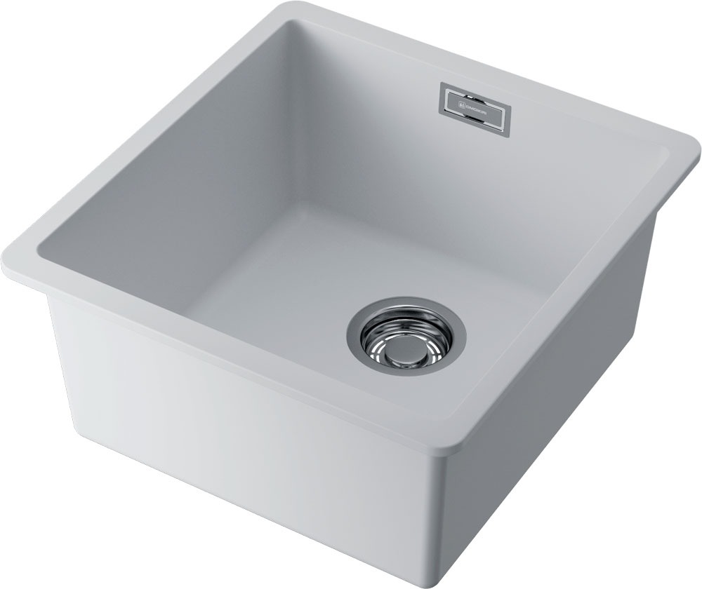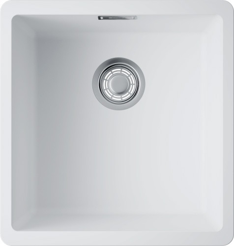 Квадратная чаша белого цвета выглядит лаконично: строгая геометрия без лишних деталей и ровные грани подчеркивают аккуратный периметр. Габариты 40×42 см занимают минимум места, а монтаж под столешницу оставляет на виду только чистую линию выреза и саму чашу с переливом.