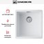- Монтаж под столешницу: кромка скрыта, на виду лишь четкая квадратная чаша белого цвета.