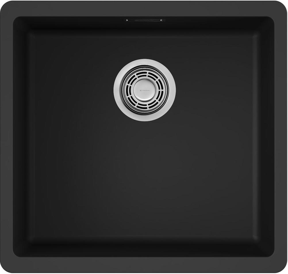 Выглядит как строгая квадратная раковина черного цвета с компактными габаритами 44×42 см. Плоские линии корпуса и ровные углы подчеркивают лаконичную геометрию, которая легко впишется в современные кухонные поверхности. Толщина стенок 10 мм добавляет визуальной глубины, а одночашевая схема делает профиль более компактным и упорядоченным.