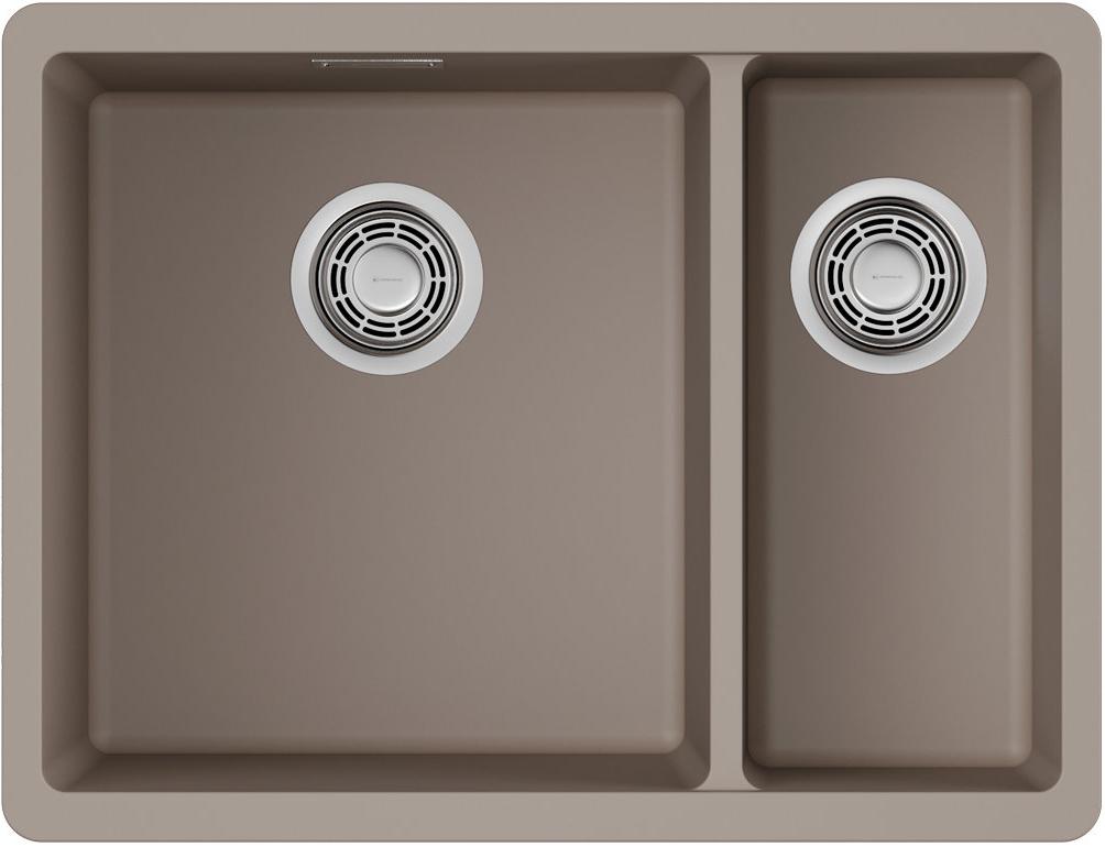 Выглядит сдержанно и компактно: прямоугольная форма размером 55×42 см позволяет встроить мойку в современную кухонную композицию, а бежевого цвета покрытие добавляет тёплых тонов рабочей зоне. Плоские линии и минималистичная геометрия подчеркивают компактность, при этом конструкция не отвлекает внимание от столешницы — монтаж под столешницу обеспечивает плавный переход между поверхностями.