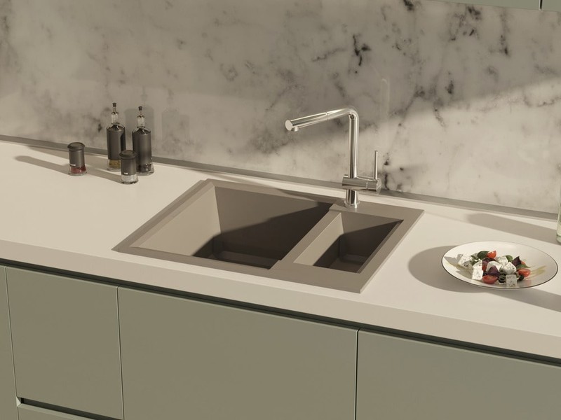 вровень со столешницей — создается ощущение бесшовного пространства, а если мойка сделана из того же материала, то и единого дизайна;