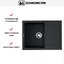 Материал — TetoGranit. Толщина стенок 10 мм придает конструкции внушительную основу, а значит, мойка уверенно держит форму и сохраняет стабильность при ежедневной эксплуатации. Поверхность черного цвета органично сочетается как с темными, так и со светлыми фасадами — легко добиться продуманного визуального акцента на рабочей зоне.
